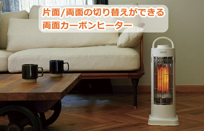 APIX 両面カーボンヒーター ACH-480 電気ストーブ 片面 300W / 両面 600W の切り替えができる 転倒OFFスイッチ 3時間自動OFF アピックス 暖房機 片面/両面の切り替えができる両面カーボンヒーター ありそうでなかった片面/両面を切替えできるカーボンヒーター 「片面」はパーソナルなスポットヒーターとして使用でき 「両面」は向かい合った対面で使用したり、数人で囲んで使用するシーンにぴったり! エアコンの温風が届きにくい場所で活躍 エアコンの暖かさが行き渡らないテーブルの下や、キッチンの作業スペースなど足元を温めるスポット暖房として最適です。