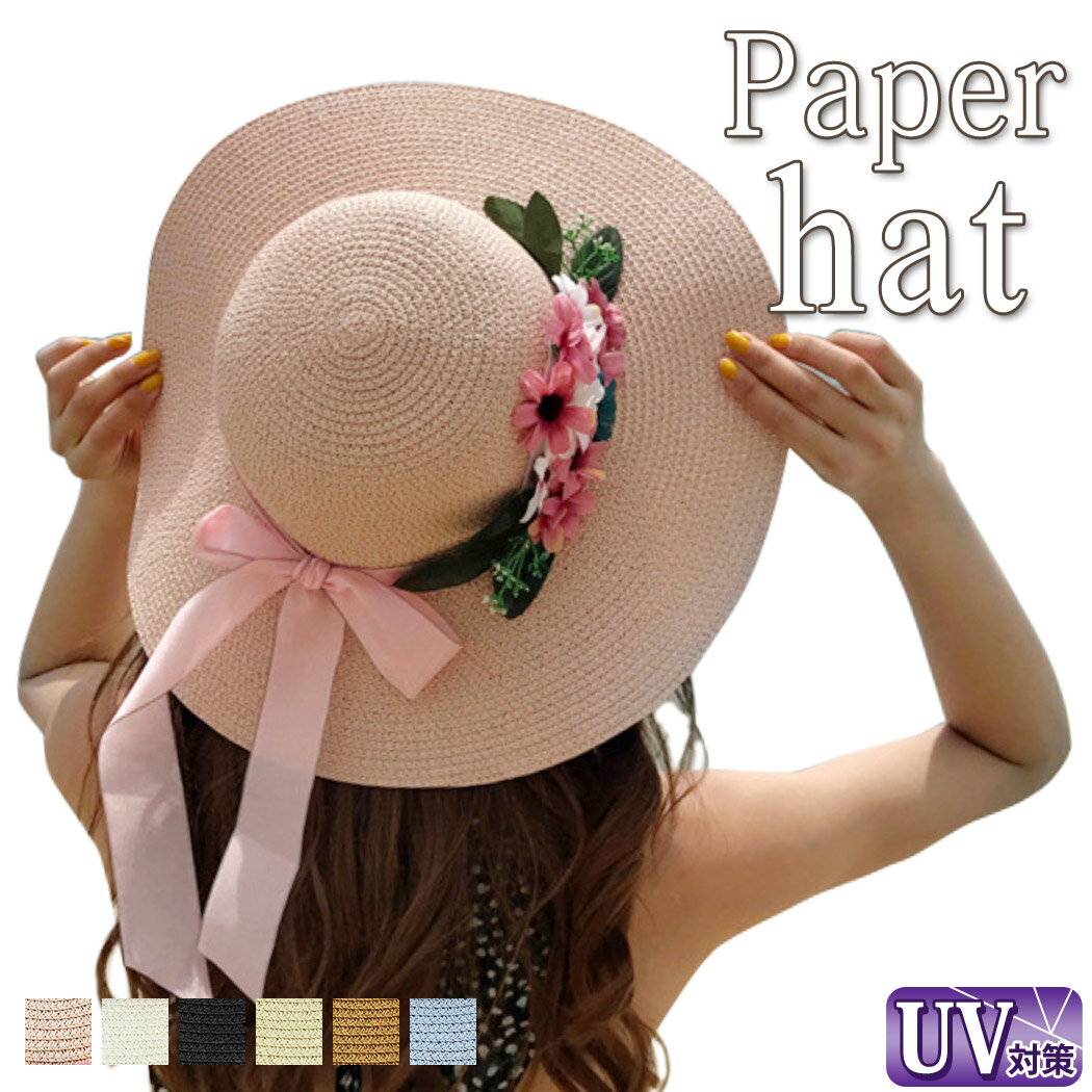 ペーパーハット つば広ハット 麦わら風 レディース UVカット帽子 農作業 UV対策 カットオフ 女の子 ママ 花飾り 大きいサイズ 春夏 おしゃれ かわいい 紫外線対策 通気性 涼しい リゾート 旅行 おでかけ 日焼け防止 大人 可愛い 蒸れにくい ベージュ ブラウン ピンク 白
