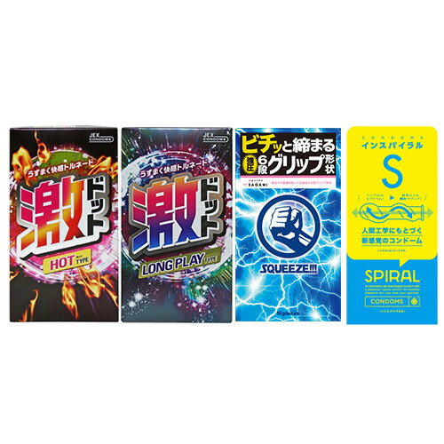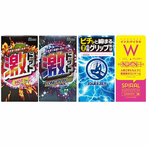 ◆【あす楽発送 ポスト投函!】【送料無料】【避妊用コンドーム】変わりだねコンドーム4点セット(スクイーズ・ミラクルフィット・激ドット(ホット・ロングプレイ)・G-PROJECT インスパイラルW) ※完全包装でお届け致します。【ネコポス】【smtb-s】