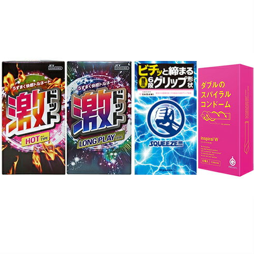 ◆『あす楽発送 ポスト投函!』『送料無料』『避妊用コンドーム』変わりだねコンドーム4点セット(スクイーズ・ミラクルフィット・激ドット(ホット・ロングプレイ)・G-PROJECT インスパイラルW) ※完全包装でお届け致します。【ネコポス】【smtb-s】