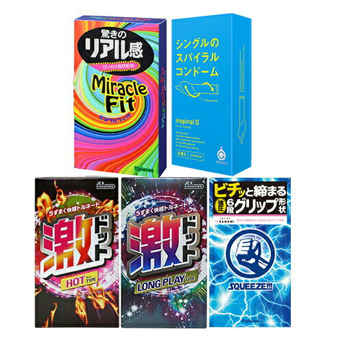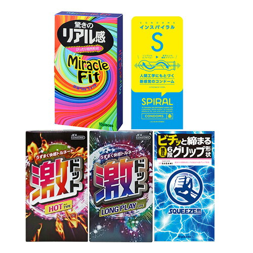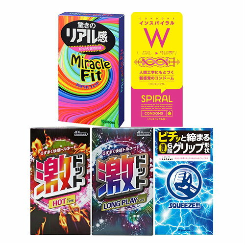 ◆【ネコポス全国送料無料】【男性向け避妊用コンドーム】変わりだねコンドーム4点セット(スクイーズ・ミラクルフィット・激ドット(ホット・ロングプレイ)・G-PROJECT インスパイラルW) - 特殊スキンを網羅した特別セット! ※完全包装でお届け致します。【smtb-s】